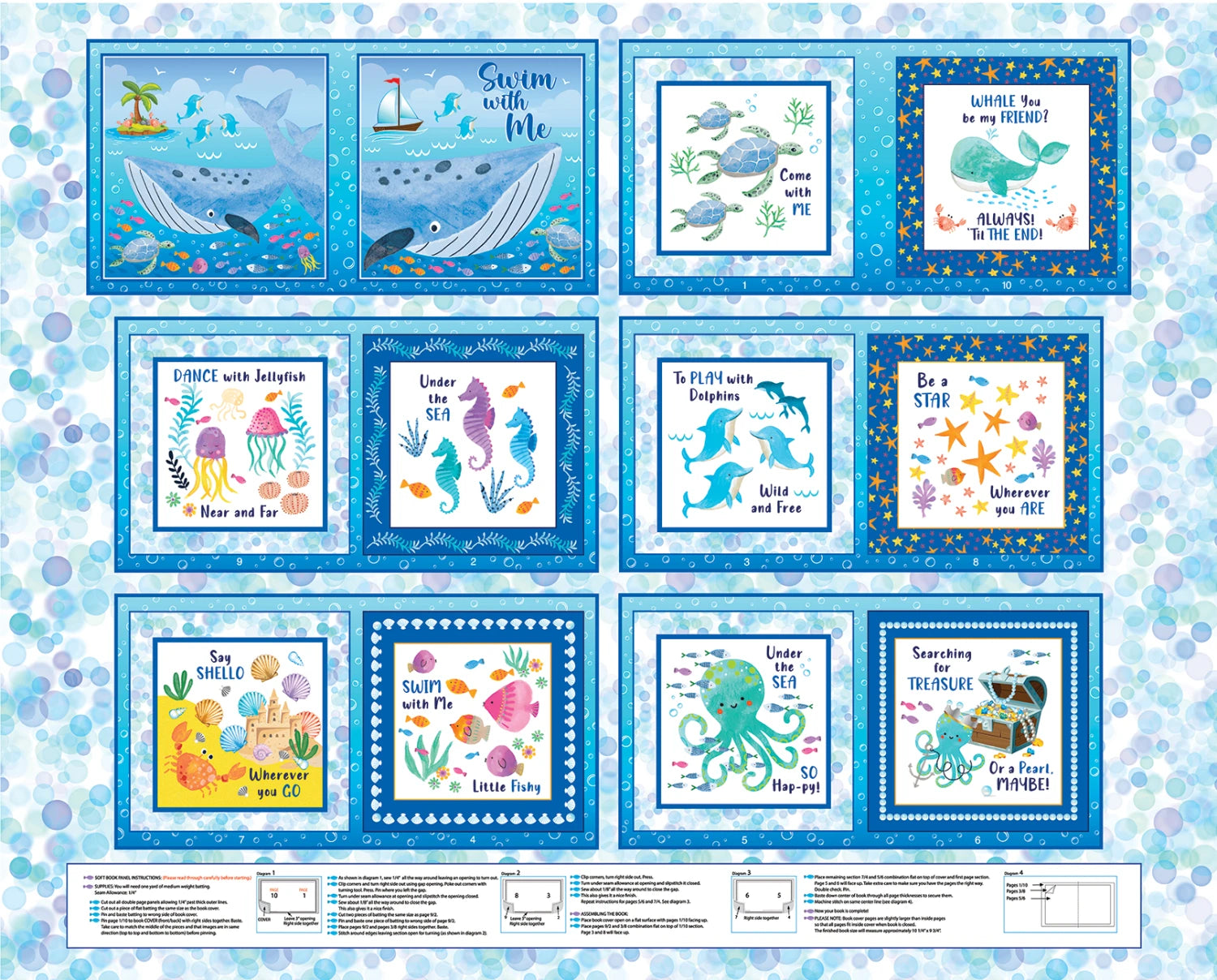 100% cotton, directions are printed onto the panel, makes one book